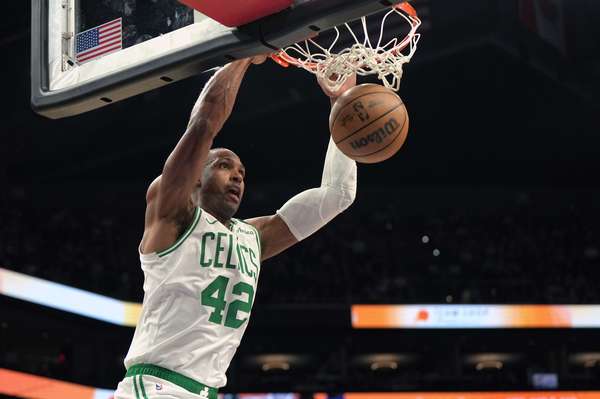 面对对手针对禁区发起的冲击,霍福德在防守端筑起移动长城。次节初段连续封盖哈特与迪温琴佐的突破上篮,直接带动球队打出11-2进攻高潮。进攻端这位37岁老将化身空间型武器,4次三分出手命中3球,其中第三节底角接怀特突分后撤步三分命中,将分差首次扩大至20+。